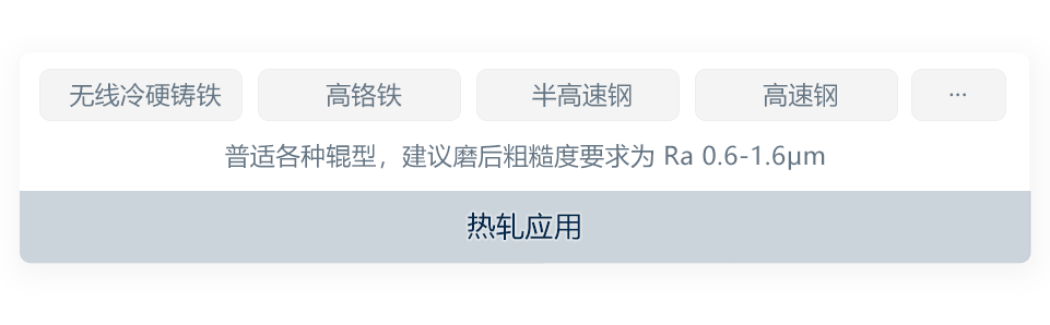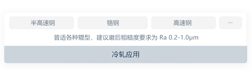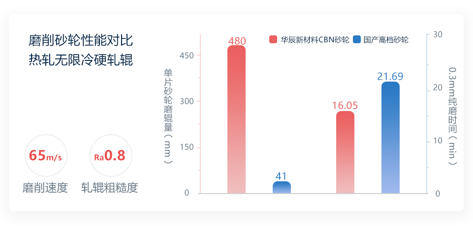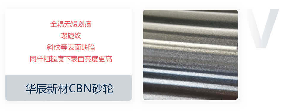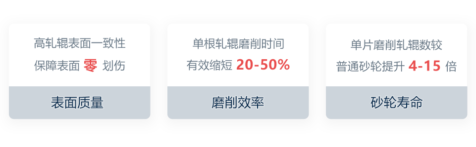超硬磨料砂轮由特定配比下的超硬磨料及结合剂固结成型,得益于磨料自身优越的理化特性,结合自主研发的砂轮配方及先进成型方法,研制轧辊磨削CBN砂轮。产品相比传统砂轮具有更高性能的同时,获得更高的耐用性、稳定性及安全性。通过面向加工场景的工艺匹配,可广泛应用于具有高精度等严苛指标下的磨削场景,如钢铁轧制配套轧辊(特别是高速钢材质轧辊)的表面修磨。