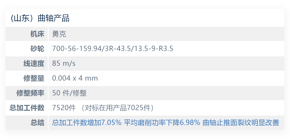 案例1–山东某厂 曲轴类产品 表面磨削加工