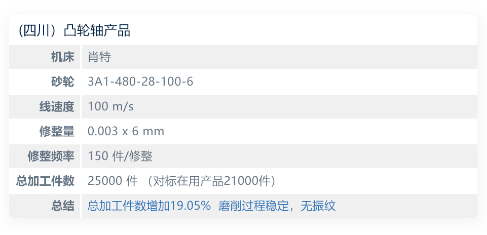 案例2–四川某厂 凸轮轴类产品 表面磨削加工