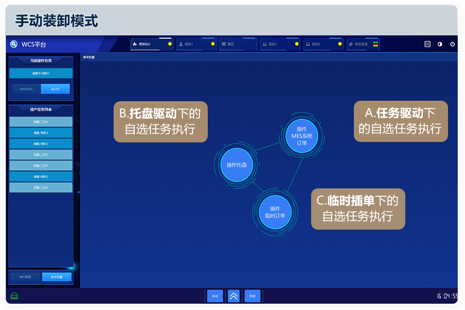3、自/手动模式下装卸任务执行